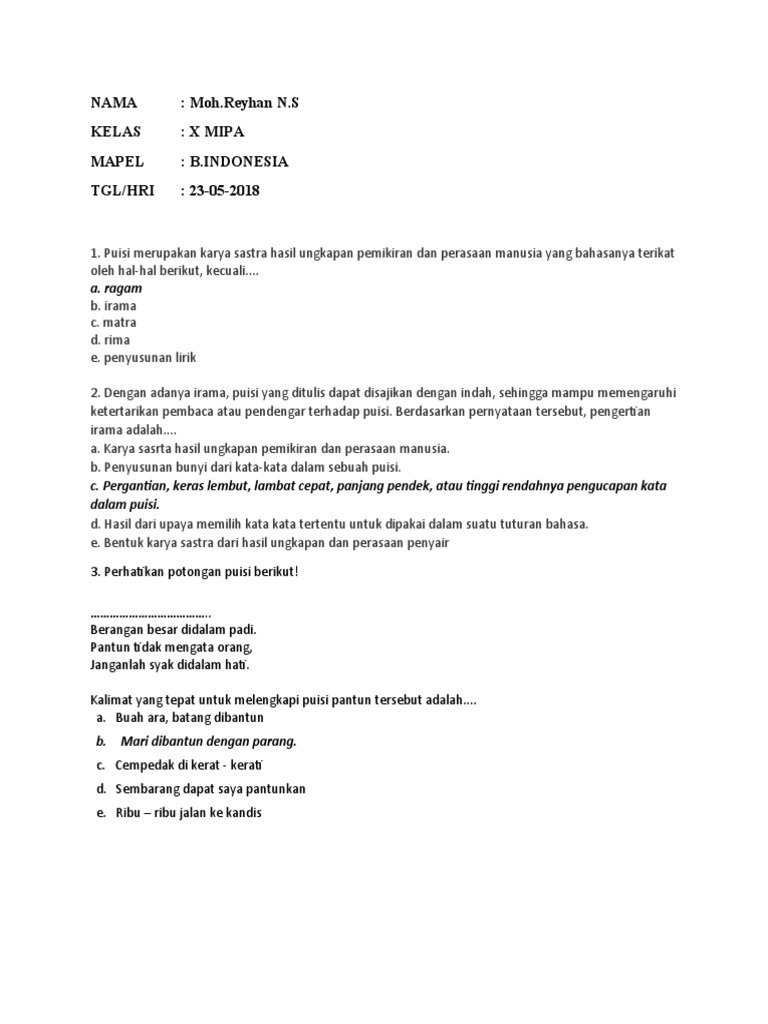 Contoh Soal Puisi Beserta Jawabannya Guru Galeri