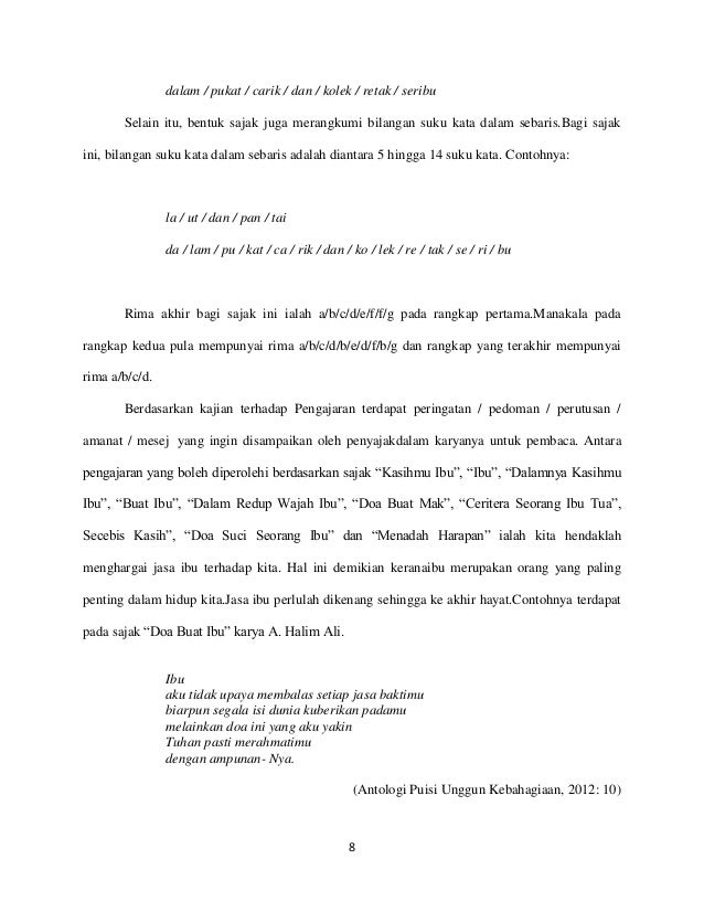 Puisi pada dasarnya merupakan sebuah karya sastra yang terdiri dari berbagai jenis karya sastra turunan lainnya seperti pantun karmina gurindam syair dan berbagai jenis karya sastra turunan lainnya. Bait kedua Ibuku memiliki pola rima akhir. Namun bukan berarti peran sang ayah terpinggirkan.