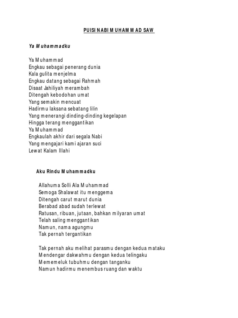 Mar 08 2021 Berikut ini adalah 3 puisi maulid nabi muhammad saw yang di kirim oleh pembaca puisina mudah mudahan puisi ini bisa memberi manfaat kepada kita semua bisa menambah kecintaan kita pada beliu nabi akhir zaman nabi panutan amin allahuma solli ala muhammad semoga shalawat itu akan tetap berdengung hingga akhir masa nanti.