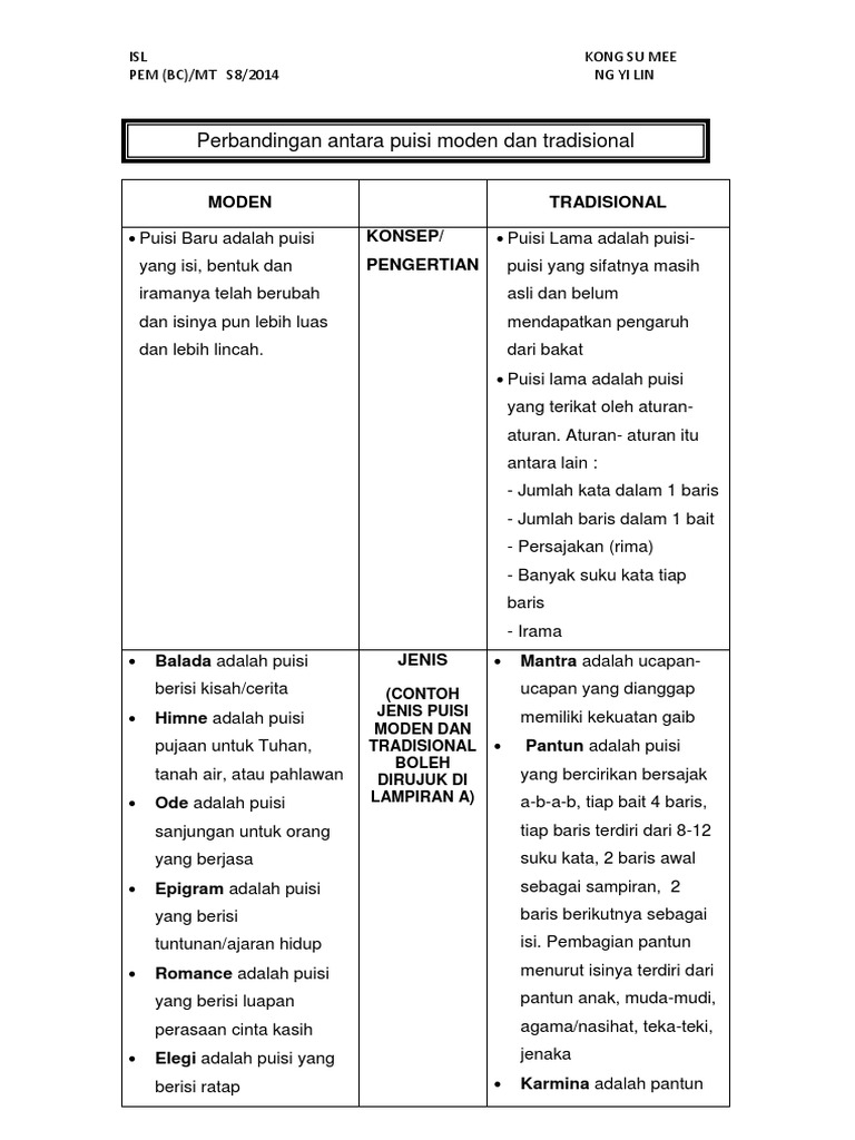 Perbandingan Antara Puisi Moden Dan Tradisional
