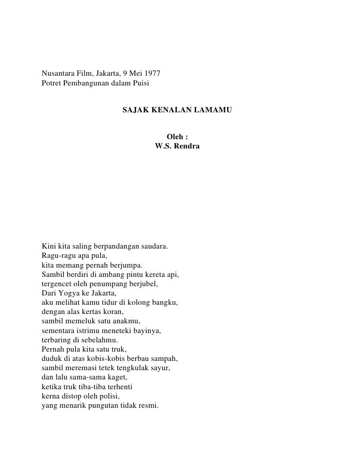 Aku bersenandung lagu tentang jakarta ibukota negara menyirat aneka peristiwa pesona indah wajah pancarkan kilau permata meski rahimmu menyimpan selaksa problema kerangka dinding menjulang mencakar langit balok beton menggumpal turut menyesaki bumi menyiut wadah tempayan yang kian menyempit tirta berkelana. Ajip di buku itu menghimpun puisi beberapa penyair tentang jakarta dan dicomotnya empat sajak chairil aku berkisar antara mereka tuti artic. By destiara cahaya on jumat mei 11th 2018 categories.