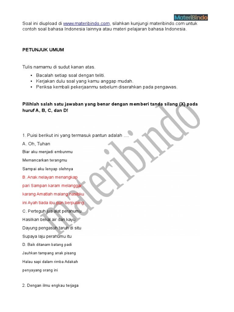 Contoh Soal Bahasa Indonesia Kelas 7 Semester 2 1