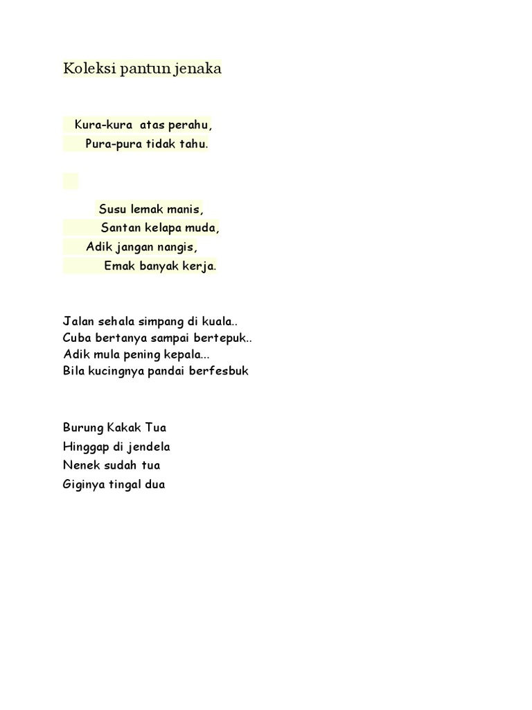 Mar 11 2021 Contoh pantun jenaka 2 bait apa bagaimana. Puisi diperkirakan menempati urutan kedua setelah sajak. Walaupun tidak sepandai orang yang berbakat.