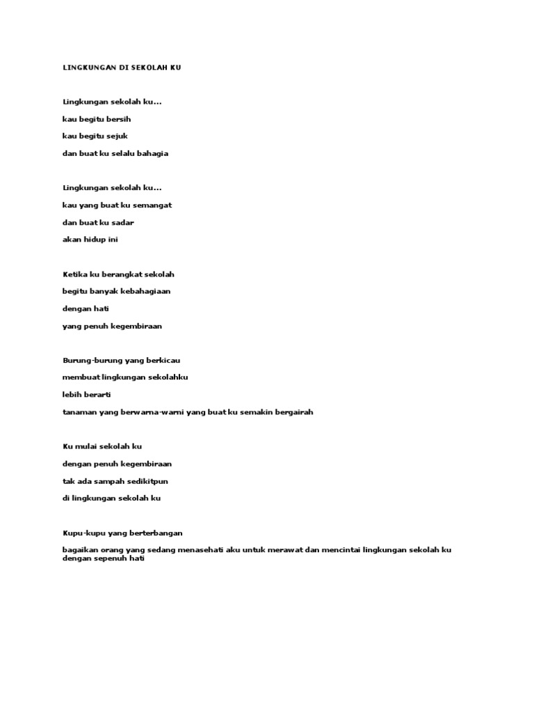 Banyak cara untuk menjaga Lingkungan hidup salah satunya dengan mengingatkan pentingnya menjaga suatu lingkungan hidup. Contoh syair tentang kebersihan lingkungan cikimm com sumber dari. Puisi tentang lingkungan sekolah merupakan puisi yang bertemakan keadaan seputar sekolah.