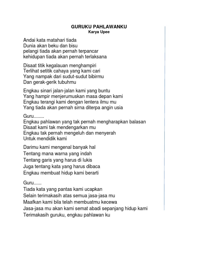 Pahlawanku Puisi Guruku Yang Mulia