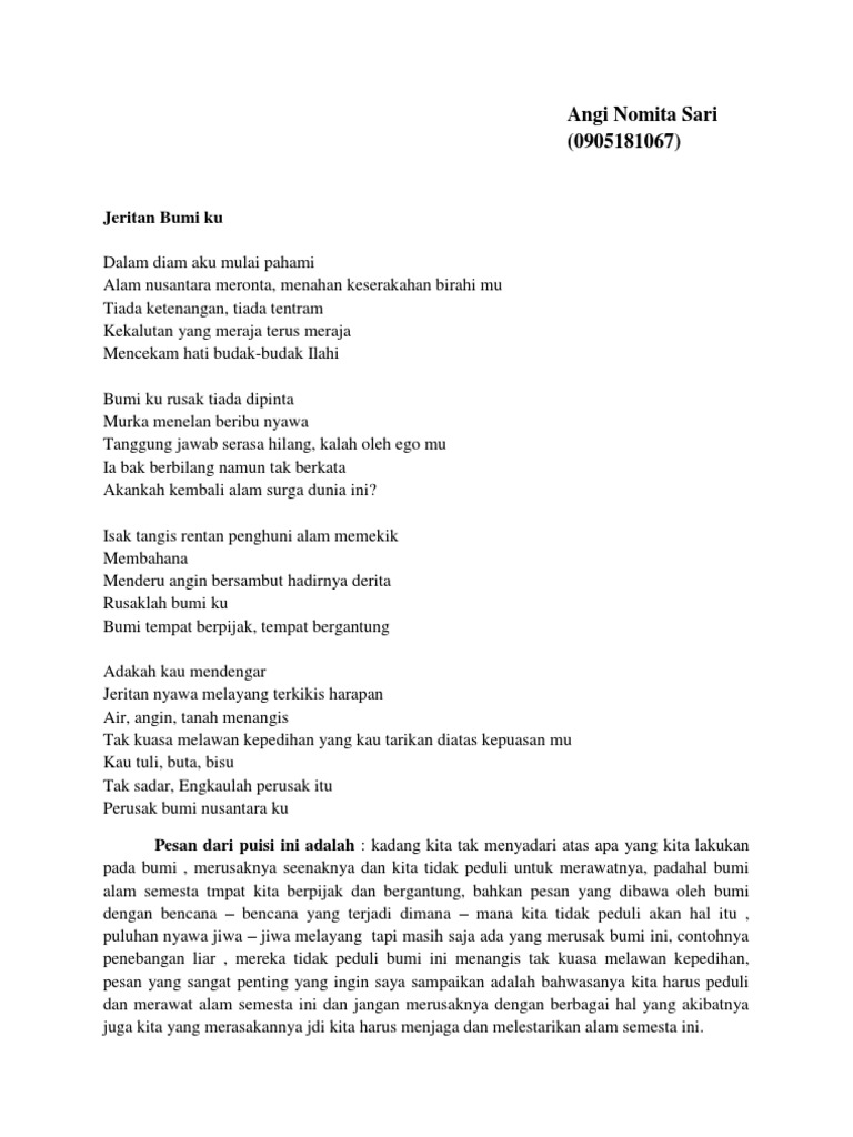 Maka apapun rasa dapat terlukis secara perlahan dari goresan pena yang mengalur. Puisi kelu di perut bumi. Bumiku Saat Ini Total hadiah senilai Rp 26 Lomba Puisi Nasional Berhadiah Uang Tunai Total 16 Juta Lomba Puisi Nasional 2020 Hadiah 16 JT Tema.