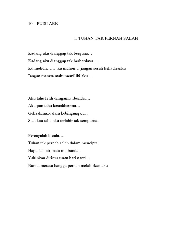 Puisi yang dihasilkan penyair disebut puisi kontemporerLATUN 2012 9Tryout UN Bahasa Indonesia IPAIPS SMA 2012. Itulah mengapa seorang anak wajib bersyukur karena telah mendapat kasih sayang dari seorang ibu.